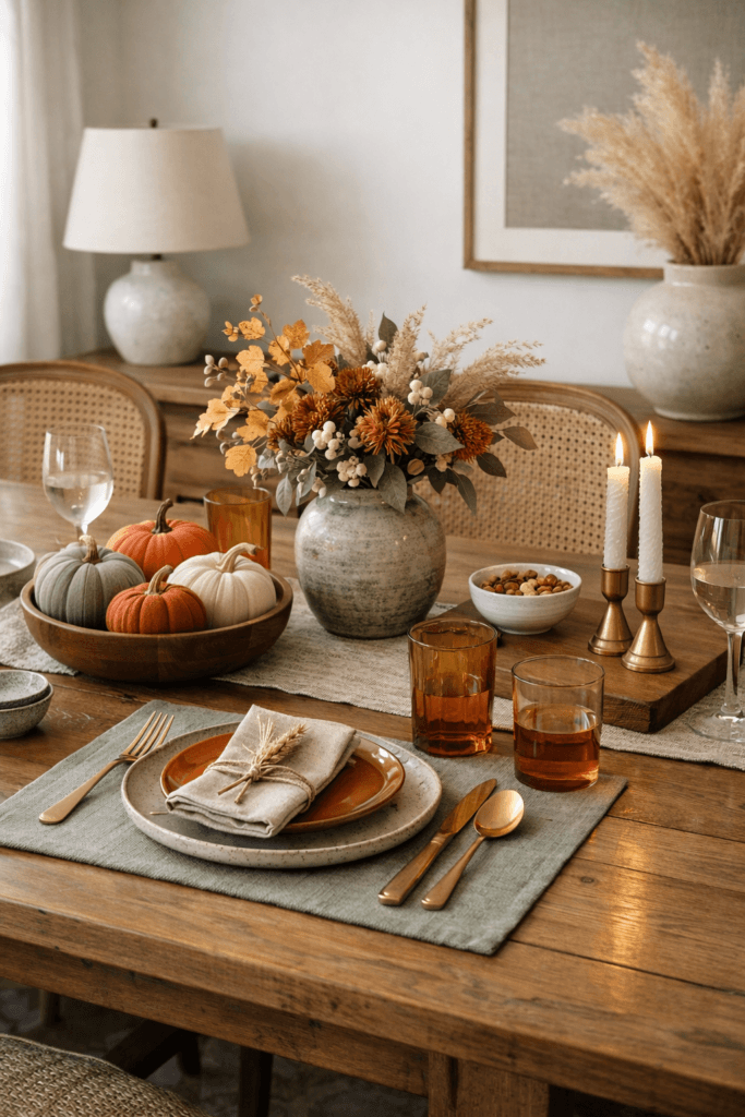 The key is keeping the palette cohesive while varying texture. For example, a smooth ceramic bowl paired with a natural wood table and soft linen runner creates a layered look that feels thoughtful rather than decorative.