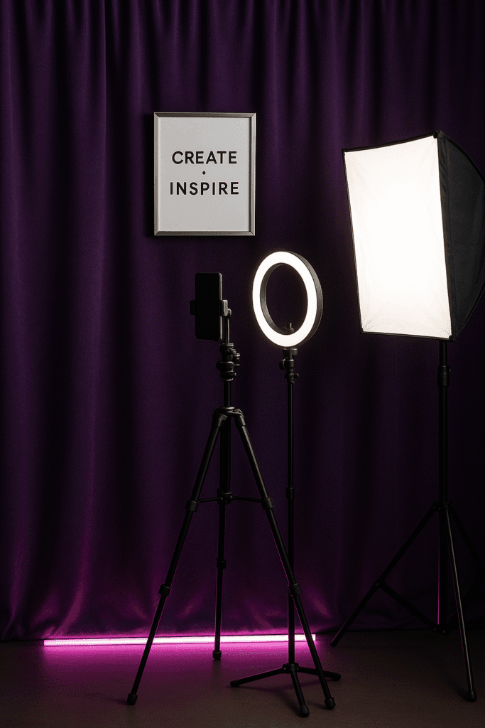 If you love taking outfit photos, aesthetic reels, or TikTok transitions, use the curtains as your photo wall. Add fairy lights, a silver wall sconce, or even a clothing rack for depth. This simple backdrop gives your photos cohesion and makes your brand presence look intentional. For dorms or apartments, this trick is a game-changer.