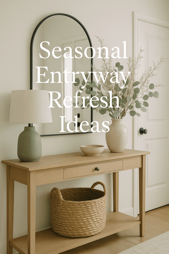 Keep your entryway fresh year-round by shifting palettes seasonally without relying on holiday décor. Use sage greens and soft whites for spring, airy coastal neutrals for summer, muted rusts and deep browns for fall, and charcoal accents for winter. Because the rustic brown surface is so adaptable, every seasonal palette feels natural and cohesive. Simple swaps—changing stems, artwork, or a tabletop object—are enough to transform your entryway’s entire mood.