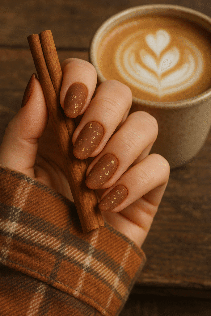 Cinnamon nails are like warm drinks in manicure form—cozy, flattering, and easy to wear. Use terracotta, spice latte, or warm caramel tones. Add subtle chrome on just one nail or create a micro French tip with a darker shade for dimension. A matte finish makes it feel like suede; glossy makes it modern and polished. Works on all nail lengths and shapes, especially square and oval.