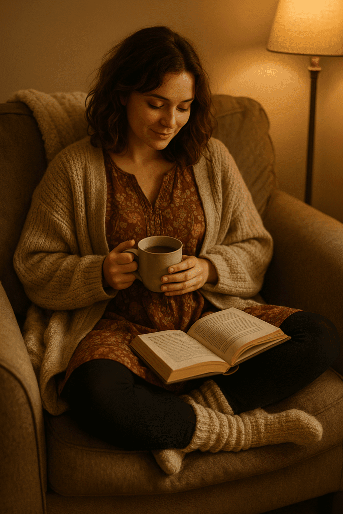 For relaxed weekends, road trips, or lounging with friends, style your boho dress like a long tunic. Slip on soft black leggings and layer a chunky knit cardigan or duster sweater over top. This combo feels relaxed yet styled—think warm drinks, good books, and that Pinterest-worthy cozy aesthetic. Add fuzzy socks or shearling slippers for an at-home moment, or booties and a crossbody for a coffee shop run. Problem solved: what to wear when comfort is key but you still want to feel styled.