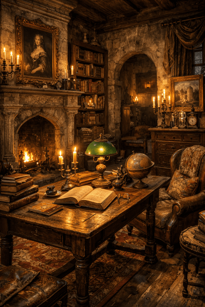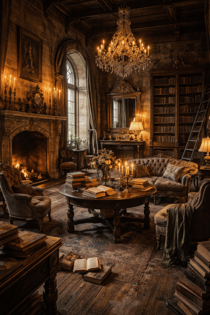 Vintage European Castlecore is about homes that feel accumulated over generations. Think Parisian apartments, old townhouses, and countryside homes filled with mismatched furniture, books, and art. This style is about memory, continuity, and quiet richness.
