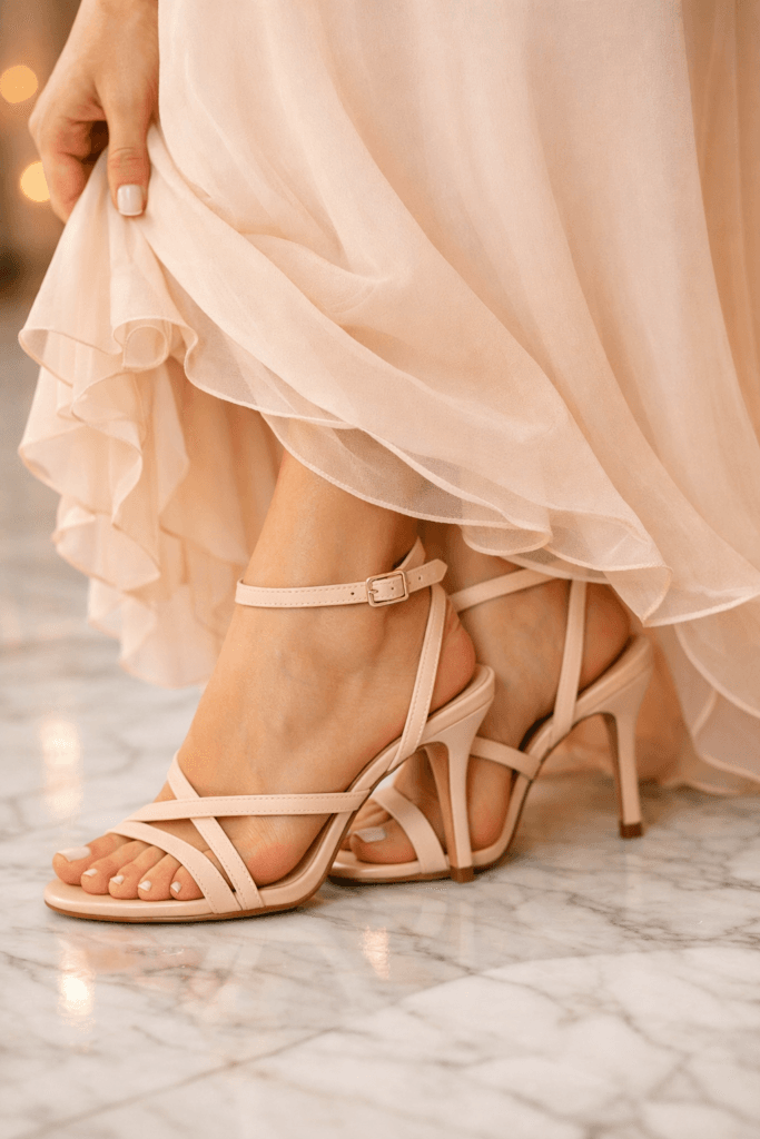 With a strapless neckline, the eye naturally goes to the collarbone and neck area, which makes earrings, necklaces, and updos feel more intentional. That’s one reason strapless styles often read “formal” immediately.