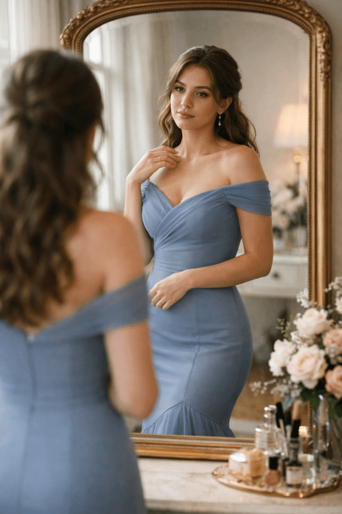 Because of that flexibility, bridesmaids often feel less pressure about exact measurements. The dress adapts slightly instead of demanding perfection.