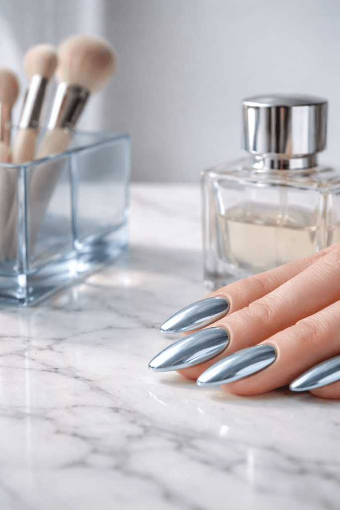 • Cool blue chrome nail inspiration