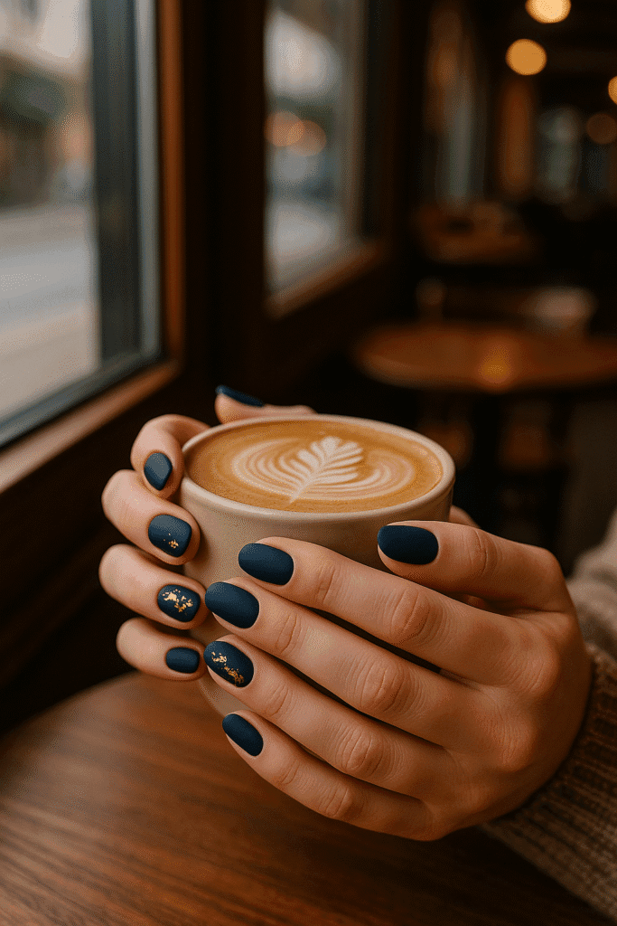 Nail trends are shifting toward intentional beauty rather than excess. Matte navy and gold nails deliver a premium look that adapts to every outfit, season, and personal style. Whether you’re heading to work, creating content, going out to dinner, or simply wanting a confidence boost, this manicure makes every moment feel elevated.