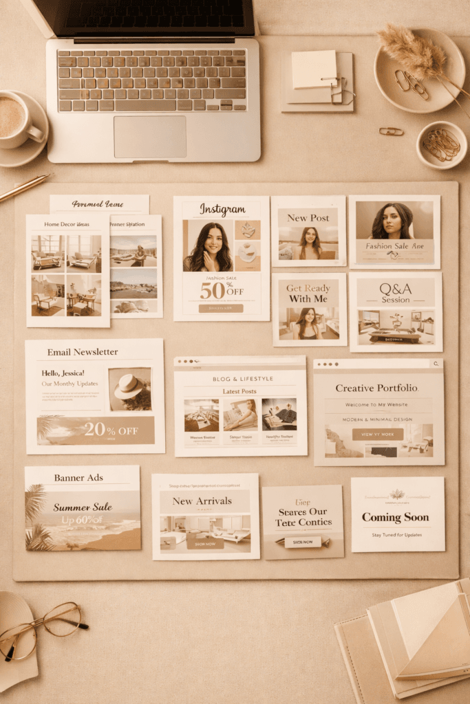 If you’re creating content online, this style can rapidly increase aesthetic value across:
