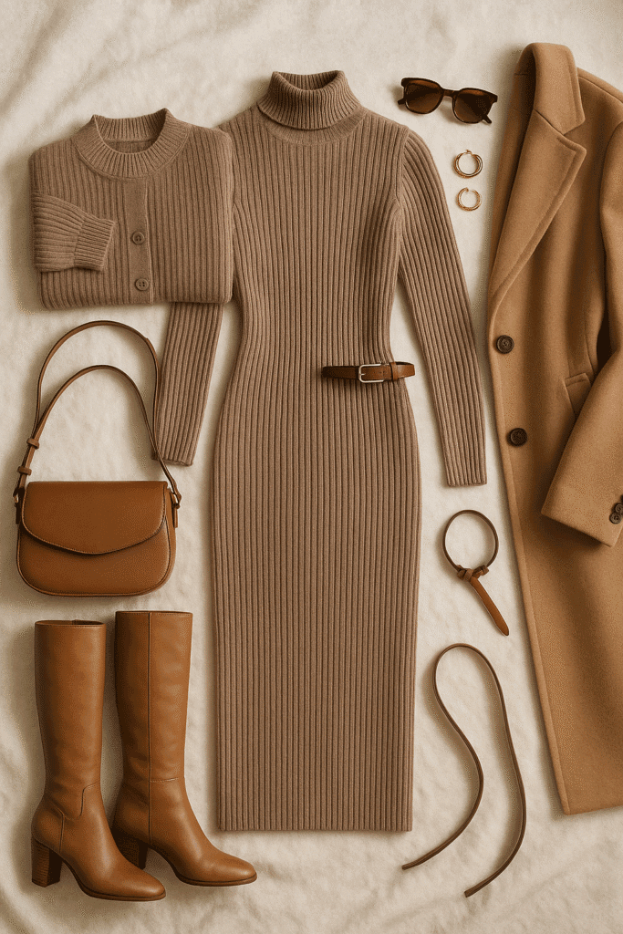 For a dinner date or event, wear your hair in loose waves or a chic bun. A long wool coat or faux-leather jacket pairs beautifully with the ribbed texture. This outfit strikes that perfect balance—comfortable enough to wear all night, yet elevated enough to turn heads.