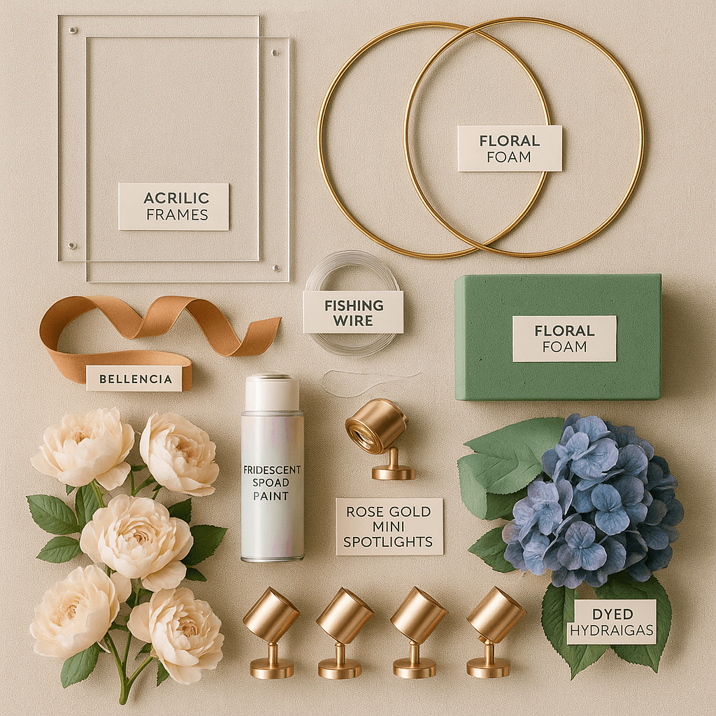 Pro Tip: Incorporate iridescent or metallic floral spray on select petals to give a subtle, reflective shimmer that photographs beautifully under soft lighting.