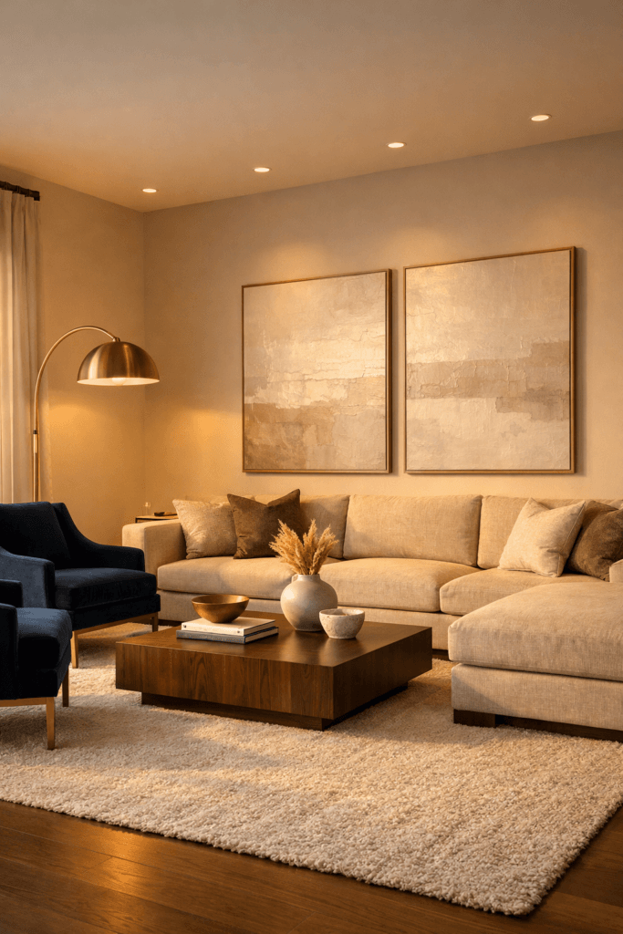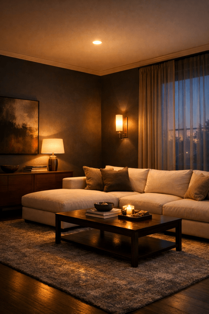 Luxury interiors rely on warm lighting between 2700K–3000K.